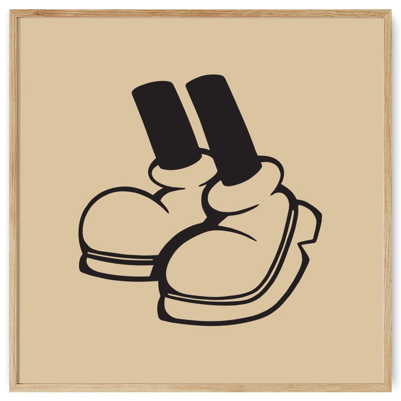 Minimalistinis linijinis animacinis plakatas, vaizduojantis kojas su batais. Grafinis plakatas suteiks išskirtinumo interjerui.