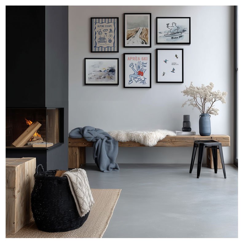 Žaismingas plakatas, kuriame vaizduojama snieglente čiuožianti meška ir rankoje laikanti kokteilį. Plakatas perteikia lengvą, humoro kupiną kalnų poilsio nuotaiką. Fone ranka lietas akvarelinis peizažas subtiliai papildo kompoziciją, suteikdamas jai gylio, švelnumo ir natūralumo. Puikiai tinka moderniems, skandinaviškiems ar laisvalaikio erdvių interjerams, taip pat kalnų nameliams ar visiems, kurie nori įnešti į namus žaismingos nuotaikos ir atsipalaidavimo dvasios.