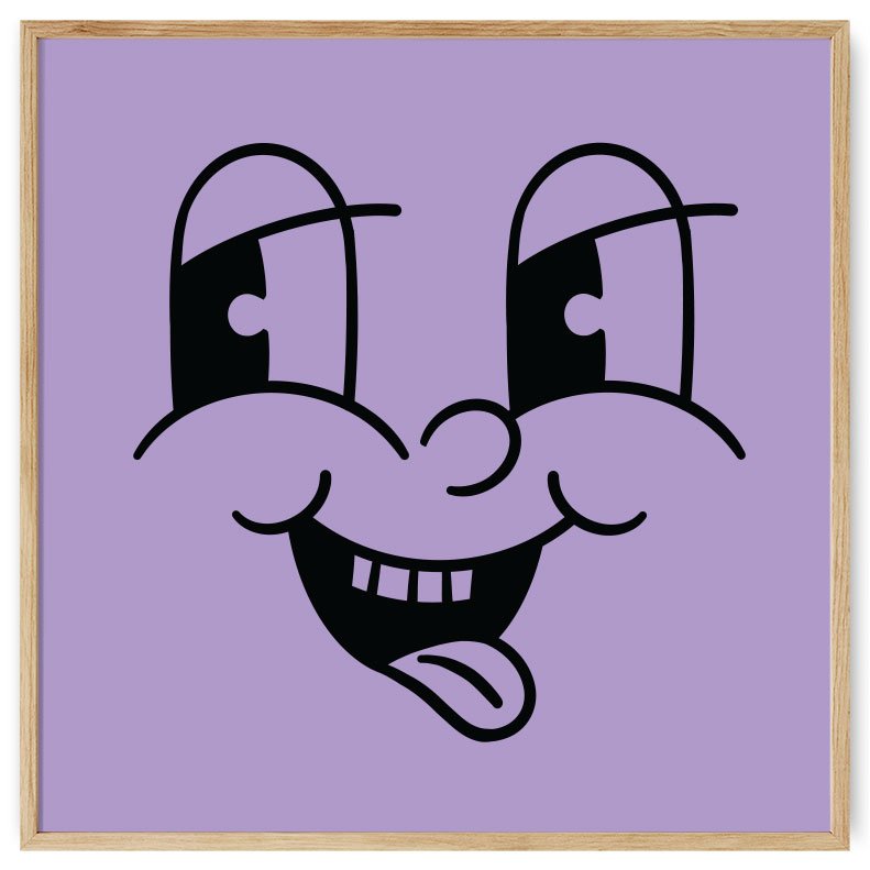 Linksmai besišypsančio veiduko grafinis plakatas. Minimalistinis linijinis animacinis šypsenos plakatas suteiks jaukumo ir geros nuotaikos.